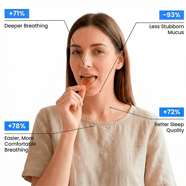 After years of smoking, I woke up every morning with a tight chest and coughing. Honestly, I didn't think a natural oral dissolving film could help, but after 4 days I noticed my breathing felt deeper and I woke up less tired, and even my daughter noticed I wasn't wheezing anymore. Worth every penny.